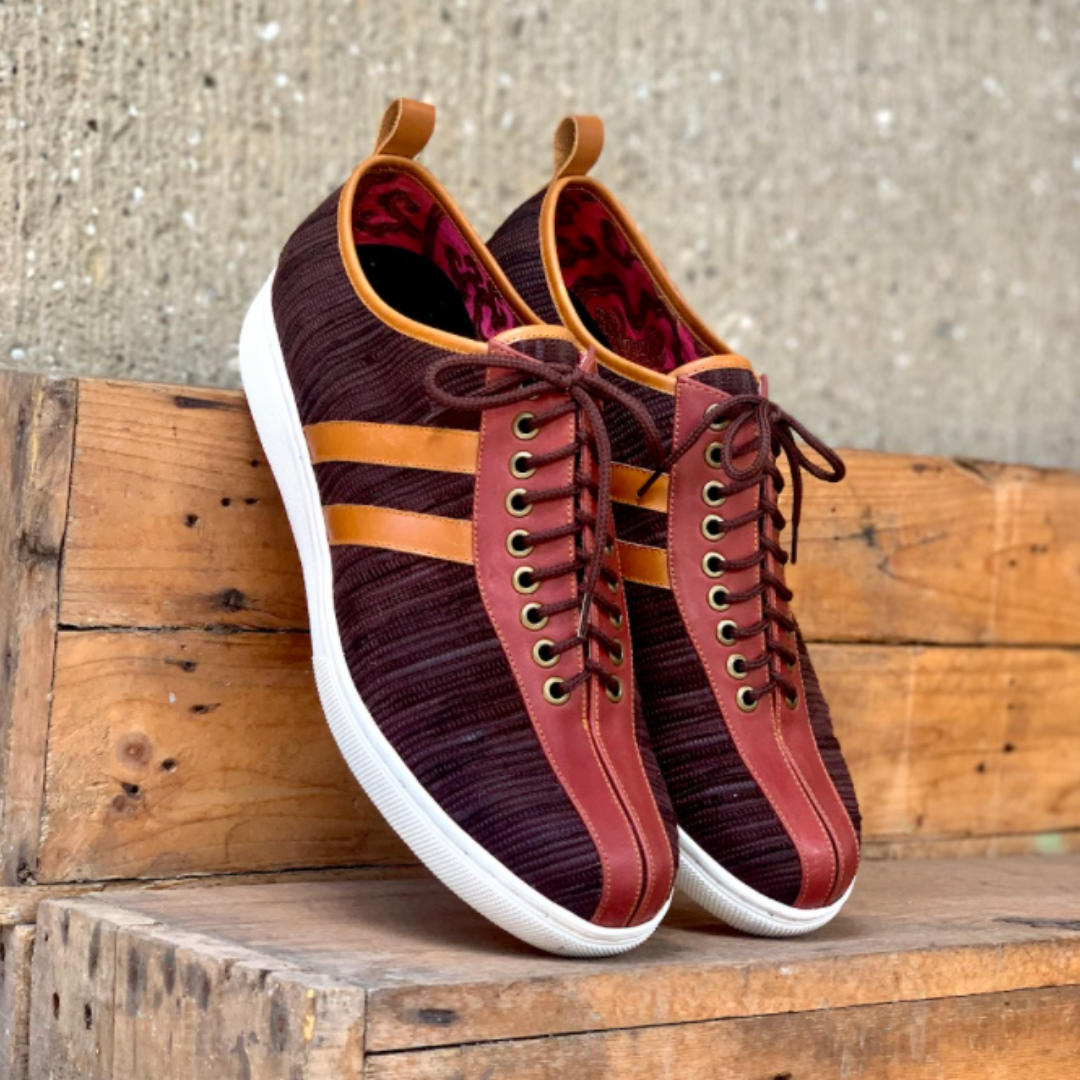 Made together with Interlace Textiles of Cebu, this hand-crafted set features their creative application of abaca fibers weaved with strips of leather and completed with durable genuine leather soles.