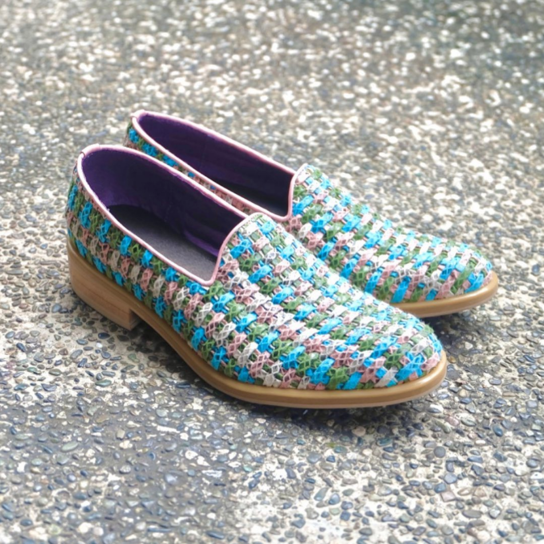 Crafted from carefully handwoven leather strips, these slip-on loafers put a unique twist on the classic loafer. The stacked heel adds a subtle lift, making them a refined statement of understated elegance.