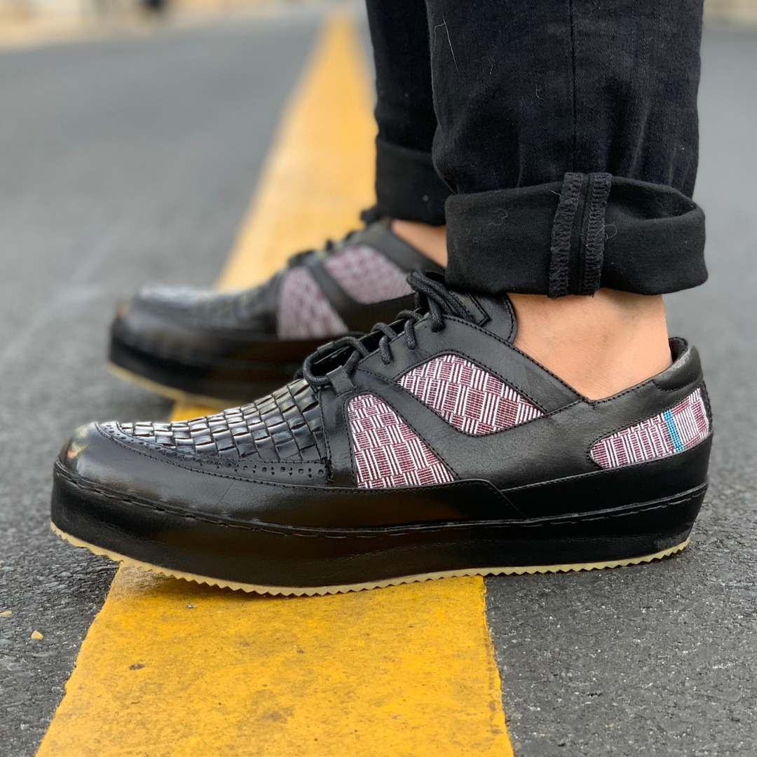 Made of genuine pull side and veg tan leather, with a hand-sculpted leather-wrapped sole and accents of the Filipino Binakol Weave.